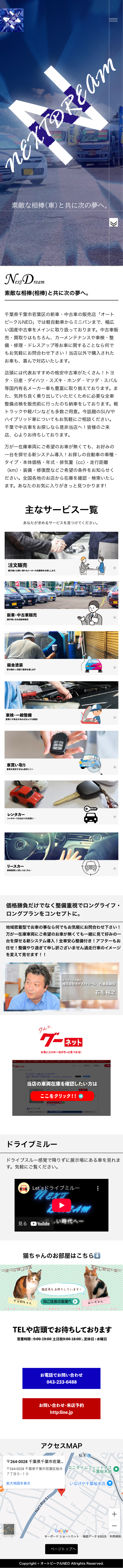 千葉県の中古車販売店「株式会社ネクストドリーム」のWebサイトを再デザイン制作。車両紹介から整備サービスまで一貫して伝わる構成と、親しみやすさを意識したデザインを提案しました。